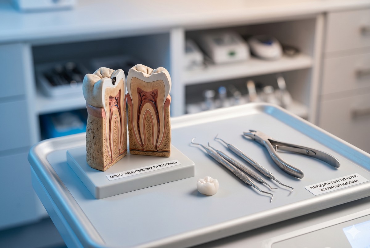 Gdy jednak destrukcja pożarła niemal całą widoczną część trzonowca, ostatecznym ratunkiem pozostaje pełna korona protetyczna. Odpowiednie szlifowanie zębów przygotowuje tkanki do przyjęcia „czapki”, chroniącej pozostałości korzenia przed rozłamaniem. Niezależnie od wybranej ścieżki, precyzyjne odtworzenie zgryzu gwarantuje bezproblemowe żucie. Współczesne procedury protetyczne wykorzystują automatyczne mieszalniki mas wyciskowych, co zapewnia powtarzalność, eliminuje pęcherzyki powietrza i gwarantuje wyjątkową precyzję pobieranych wycisków.
